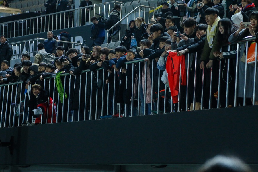 성남 팬들이 일어섰다. 응원했다. 성남을 외쳤다. 놀랍게도 경기 막판에 성남 선수들이 들소처럼 제주를 압박했다. 후반 43분 최오백과 공민현의 2대 1 패스에 이은 위협적인 슛. 후반 추가 시간 김민혁이 왼쪽 측면에서 얻어낸 프리킥 장면까지. 김정현의 마지막 프리킥이 다소 크게 벗어났지만, 성남 팬들의 응원에 선수들이 더 공격적으로 나선 것처럼 보였다.