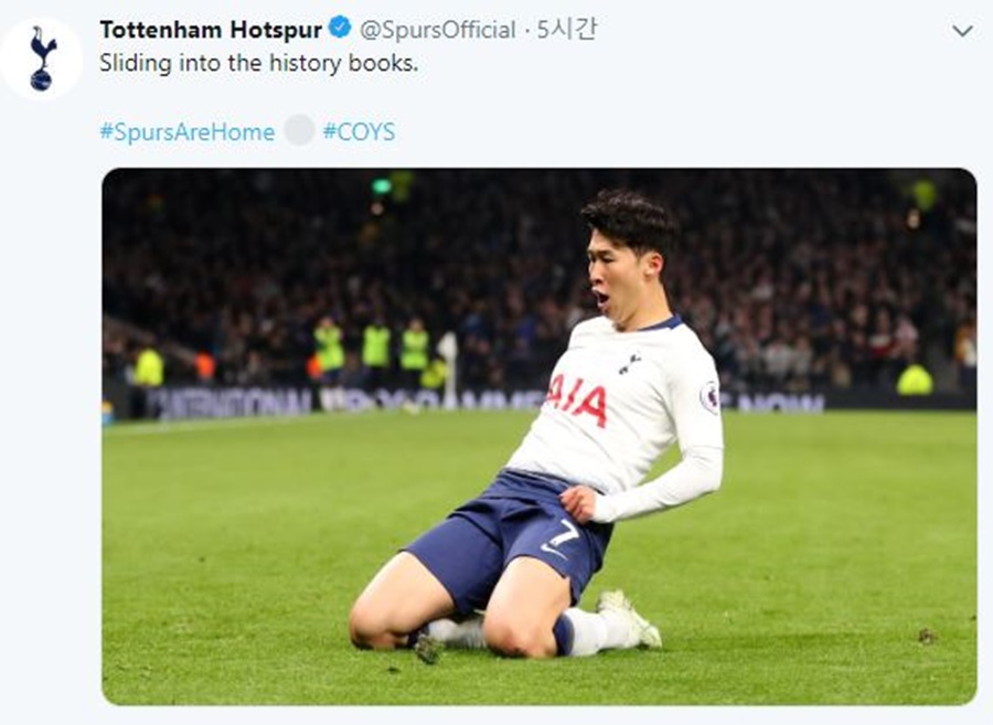 손흥민은 후반 10분 페널티박스 근처에서 시도한 슈팅으로 골망을 흔들었다. 이는 토트넘 새 역사를 장식한 골이다.