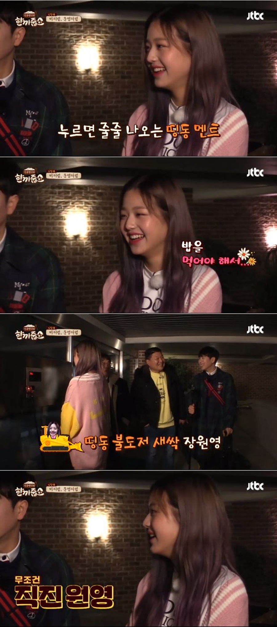 장원영은 블락비 피오와 함께 3일 방송된 JTBC '한끼줍쇼'에 이경규, 강호동의 밥동무로 출연했다.