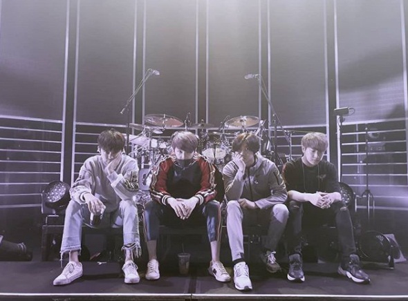 이홍기는 4일 오후 자신의 인스타그램에 "화이팅 오늘부터 한달동안 투어시작"이라는 글과 #ftisland #livetour 해시태그를 덧붙였다. 이와함께 4명이 무대에 앉아있는 사진을 함께 게재했다.