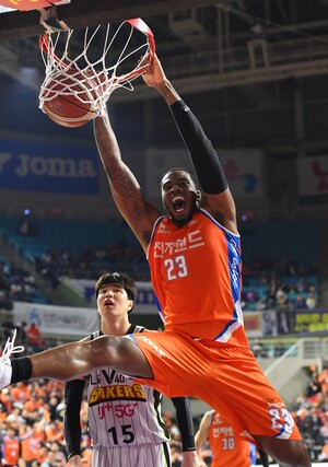 이날 전자랜드의 외국선수 듀오, 기디 팟츠와 찰스 로드가 날았다. 팟츠는 33득점으로 공격 선봉장에 섰고 로드는 12득점 8리바운드 5블록슛으로 골밑을 든든히 지켰다. 전자랜드는 외국선수 외에도 강상재(13득점 9리바운드), 정효근(15득점 9리바운드) 등 국내선수의 활약이 돋보였다.