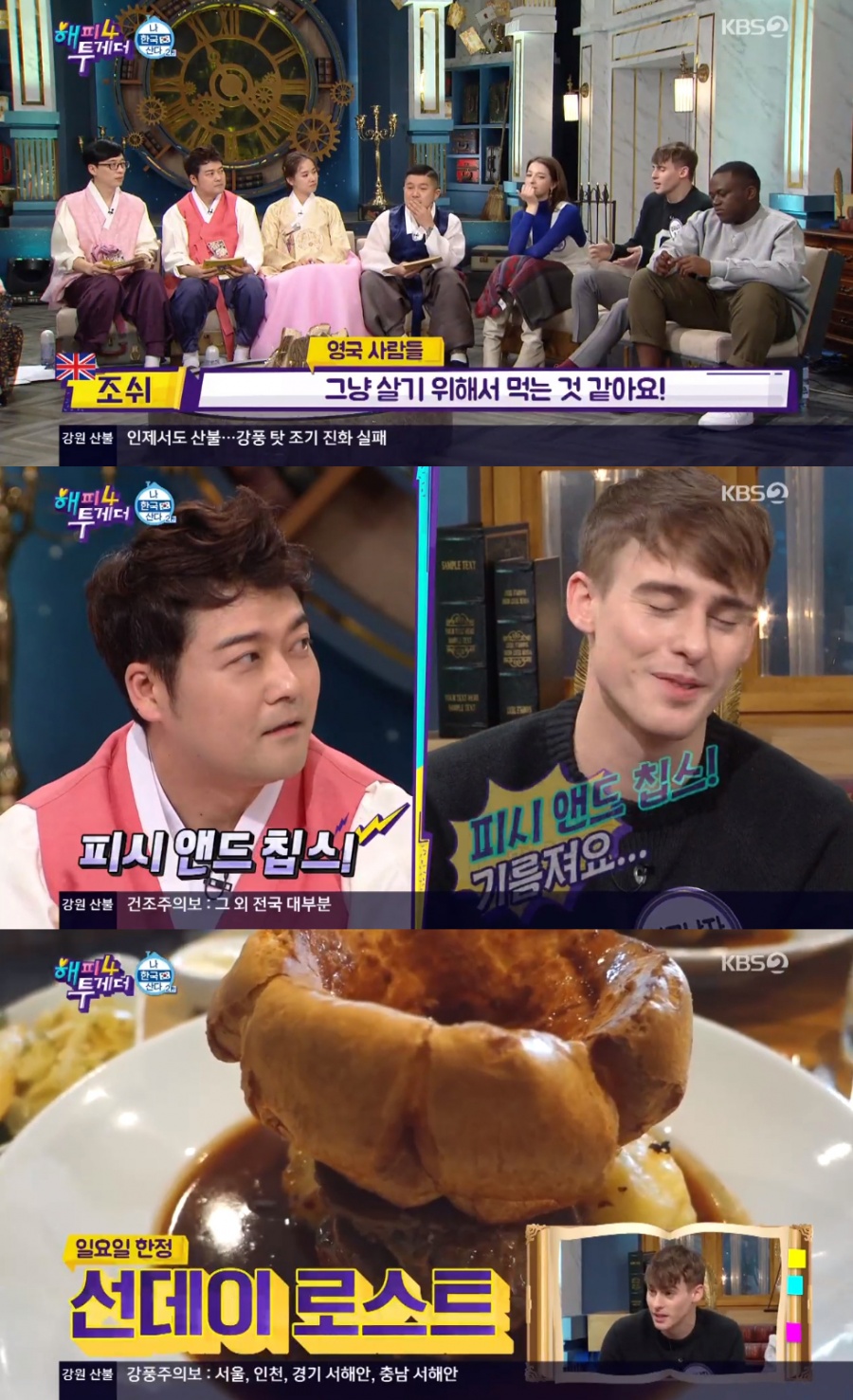 전현무가 영국이 음식이 맛없는 나라로 유명하지 않냐고 말하자, 조쉬는 당황을 숨기지 못했다. 하지만 "피쉬 앤드 칩스가 맛있다"는 샘의 말에 기름지다며 고개를 저었다.