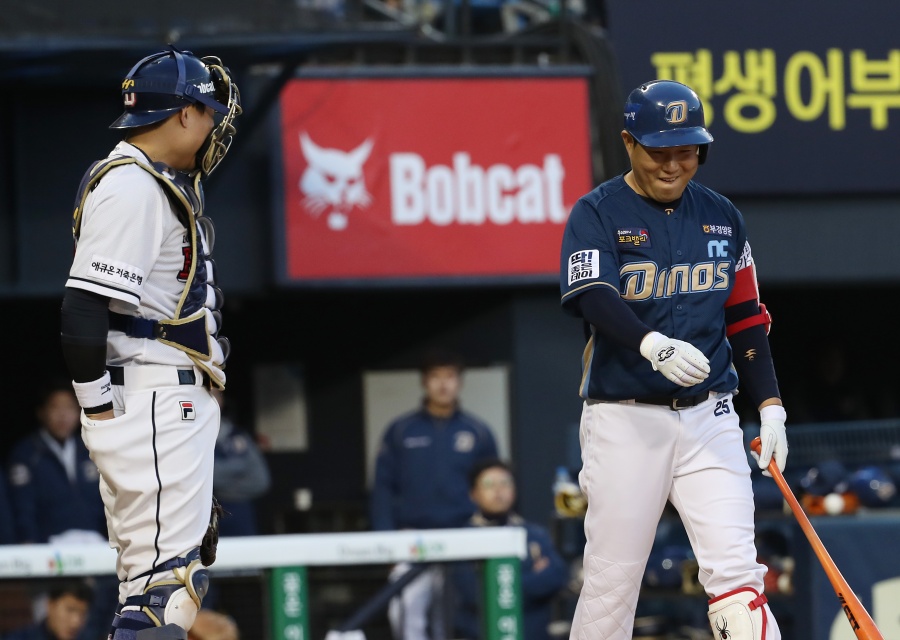 양의지는 1-0으로 앞선 2회 선두 타자로 첫 타석에 들어섰다. 그는 경기에 앞서 예고한 대로 1루 관중석을 향해 고개 숙여 인사했다. 그리고 포수 뒤쪽과 마운드를 바라보며 두 차례 더 배꼽 인사를 했다. 양의지는 그렇게 친정 팬들에게 두산 안방마님이 아닌 NC 안방마님으로 첫 인사를 했다. 관중석에서는 야유가 아닌 환호가 터져 나왔다.