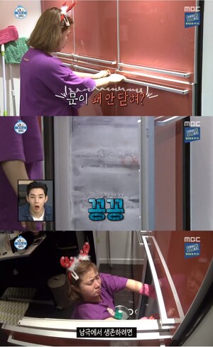 박나래는 오랜만에 일상 모습을 드러냈다. 내추럴한 얼굴의 박나래는 집안 정리 후 밥을 먹기 위해 냉동고를 열었다. 하지만 문이 제대로 문이 닫히지 않았고, 성에로 뒤덮인 충격적인 냉동고 상태에 경악했다. 흡사 남극을 품고 있는 듯한 비주얼의 냉동고는 뜨거운 물로 닦아도 닦아내지지 않았고, 결국 도구를 이용해 얼음을 깨야 했다.