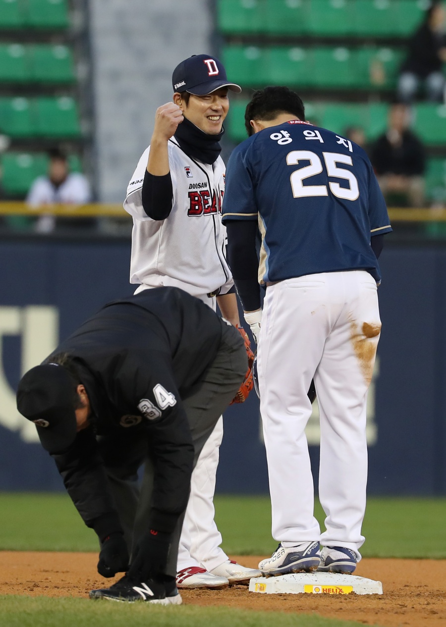 천하의 양의지도 친정 팀과 첫 경기는 긴장됐다. 막상 경기가 시작되니 두산 타자들에게 농담은 커녕 말도 걸기 힘들었다고 한다. 양의지는 "일부러 더 이야기를 안 한 것 같다. 긴장해서 말이 안 나오더라. 내일(6일)부터는 말을 많이 해볼까 싶기도 하다"고 말하며 웃었다.