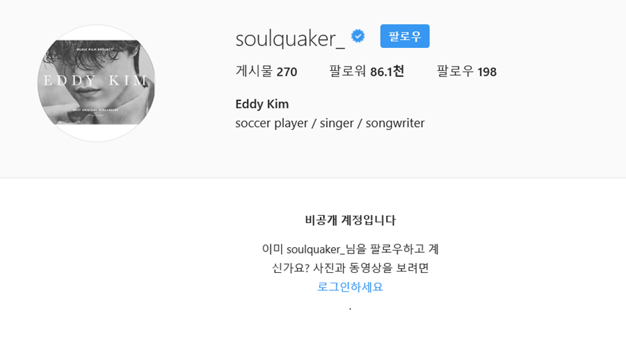 [스포티비뉴스=강효진 기자] 가수 에디킴이 SNS 계정을 비공개로 전환했다.