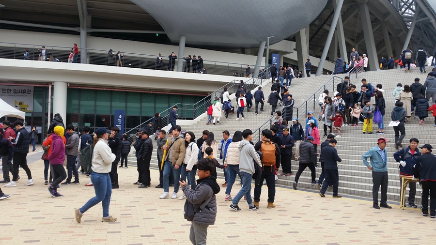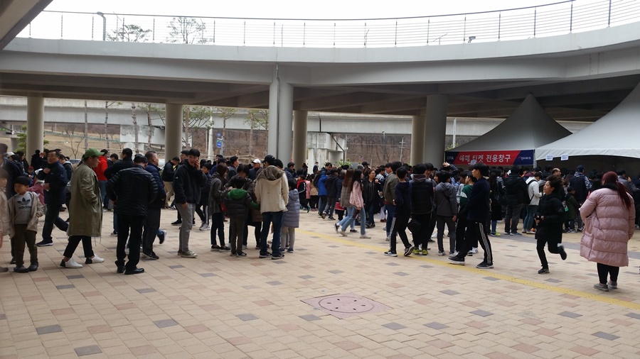 경기 전 차나 버스를 이용하지 않고 역에서 걸어가봤다. 지도상으로 보면 가기 쉬워보였기 때문에 체험 삼아 걸어 갔다. 성인이 걷는다면 '힘드네'라는 느낌이 들 정도는 아니었다. 단 아이와 함께 오거나 한다면 꽤 고단한 길이 될 수 있겠다는 생각이 들었다. 아무나 쉽게 허락하는 경기장이 아니다.