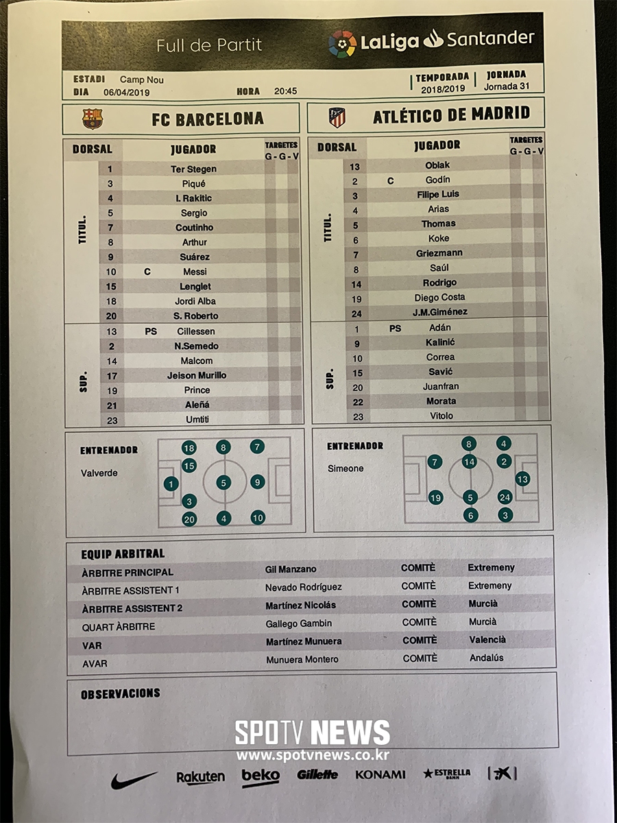 바르셀로나는 7일 오전 3시 45분(한국시간) 스페인 바르셀로나 캄노우에서 열린 2018-19시즌 스페인 프리메라리가 31라운드 아틀레티코전에서 2-0으로 승리했다. 리그 19경기 연속 무패로 리그 선두를 유지했다. 메시는 안방에서 바르셀로나 통산 416호골을 넣으며 포효했다.