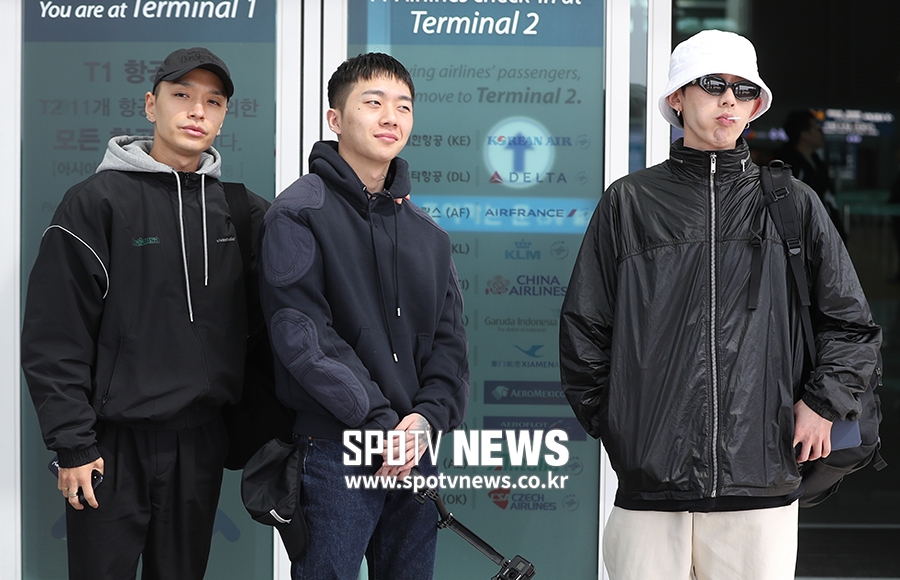 [스포티비뉴스=인천국제공항, 곽혜미 기자] SPOTV에서 제작하는 영국 여행 리얼리티와 챔피언스리그 관람 촬영 차 래퍼 사이먼 도미닉(쌈디), 우원재, 코드쿤스트가 7일 오전 인천국제공항을 통해 영국으로 출국했다.