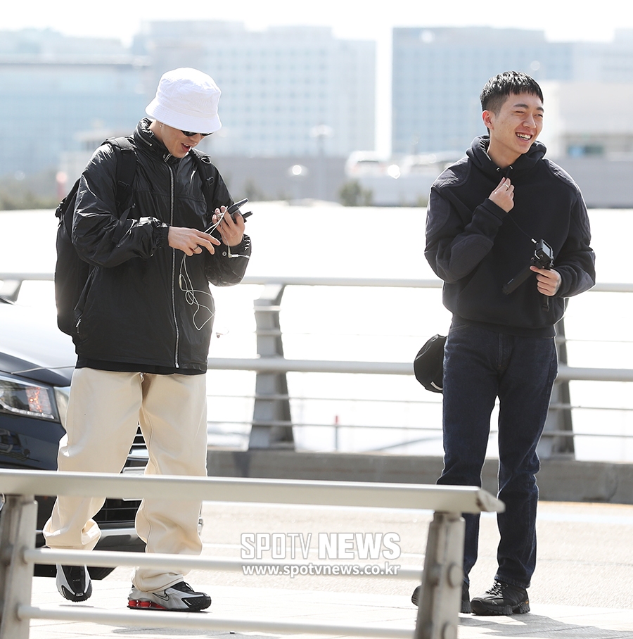 [스포티비뉴스=인천국제공항, 곽혜미 기자] SPOTV에서 제작하는 영국 여행 리얼리티와 챔피언스리그 관람 촬영 차 래퍼 사이먼 도미닉(쌈디), 우원재, 코드쿤스트가 7일 오전 인천국제공항을 통해 영국으로 출국했다. 코드쿤스트와 우원재가 출국장으로 향하고 있다.
