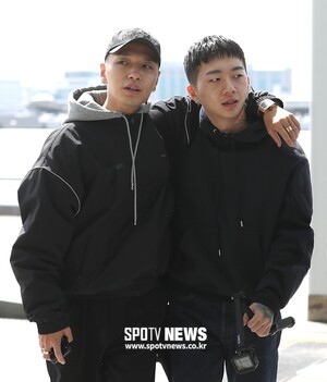 [스포티비뉴스=인천국제공항, 곽혜미 기자] SPOTV에서 제작하는 영국 여행 리얼리티와 챔피언스리그 관람 촬영 차 래퍼 사이먼 도미닉(쌈디), 우원재, 코드쿤스트가 7일 오전 인천국제공항을 통해 영국으로 출국했다. 쌈디와 우원재가 어깨동무를 하며 출국장으로 향하고 있다.