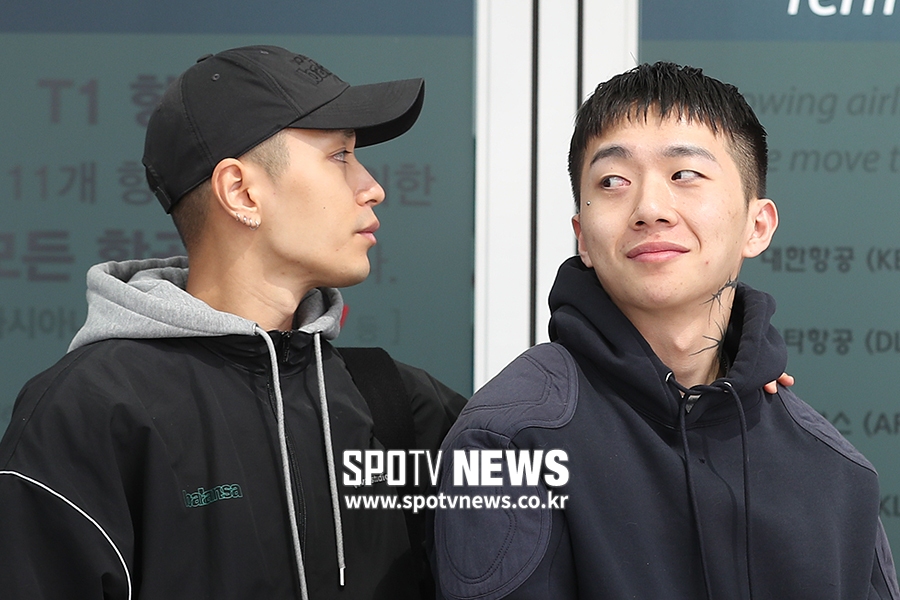 [스포티비뉴스=인천국제공항, 곽혜미 기자] SPOTV에서 제작하는 영국 여행 리얼리티와 챔피언스리그 관람 촬영 차 래퍼 사이먼 도미닉(쌈디), 우원재, 코드쿤스트가 7일 오전 인천국제공항을 통해 영국으로 출국했다. 우원재가 쌈디를 바라보고 있다.