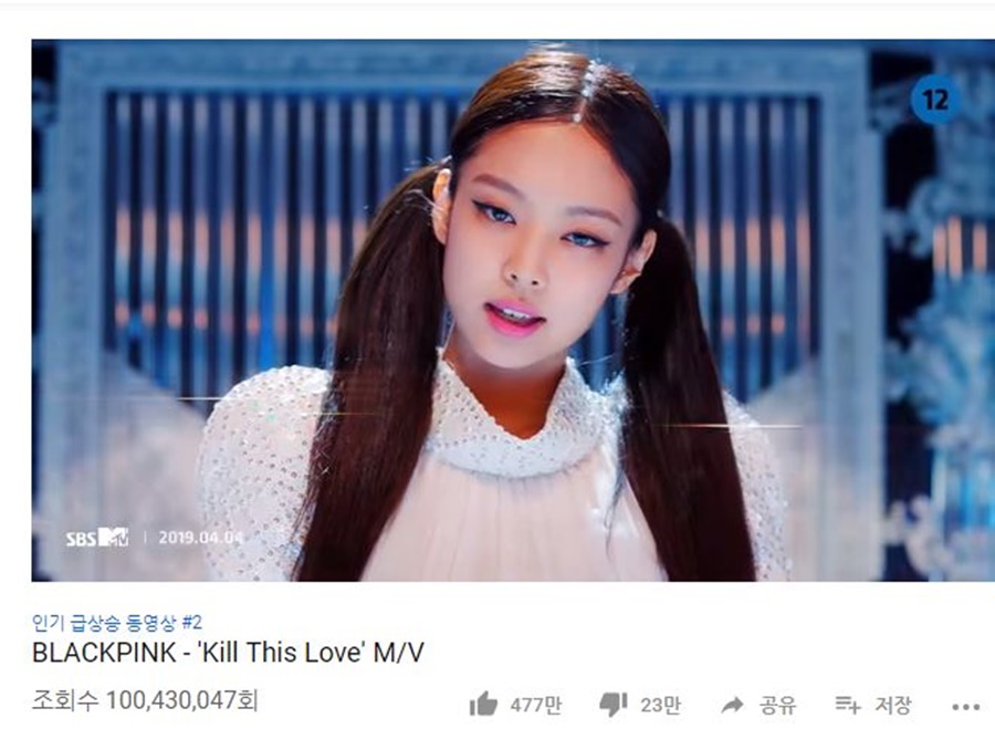 블랙핑크가 지난 5일 밤 12시 공식 유튜브에 공개한 신곡 '킬 디스 러브' 뮤직비디오는 7일 오후 2시20분께 조회수 1억을 돌파했다. 공개한 지 2일 14시간 만에 1억 조회수를 돌파한 건 전세계 최단 기록이다.