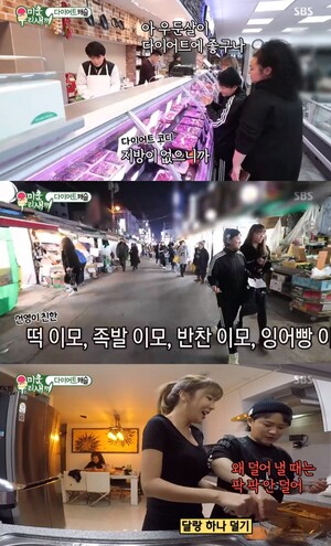 김신영은 홍진영·홍선영과 다이어트 메뉴를 위한 장보기에 나섰다. 김신영의 지휘 아래 가장 먼저 구매한 건 우둔살이었다. 김신영은 "지방이 없다"며 구매의 이유를 밝혔다.