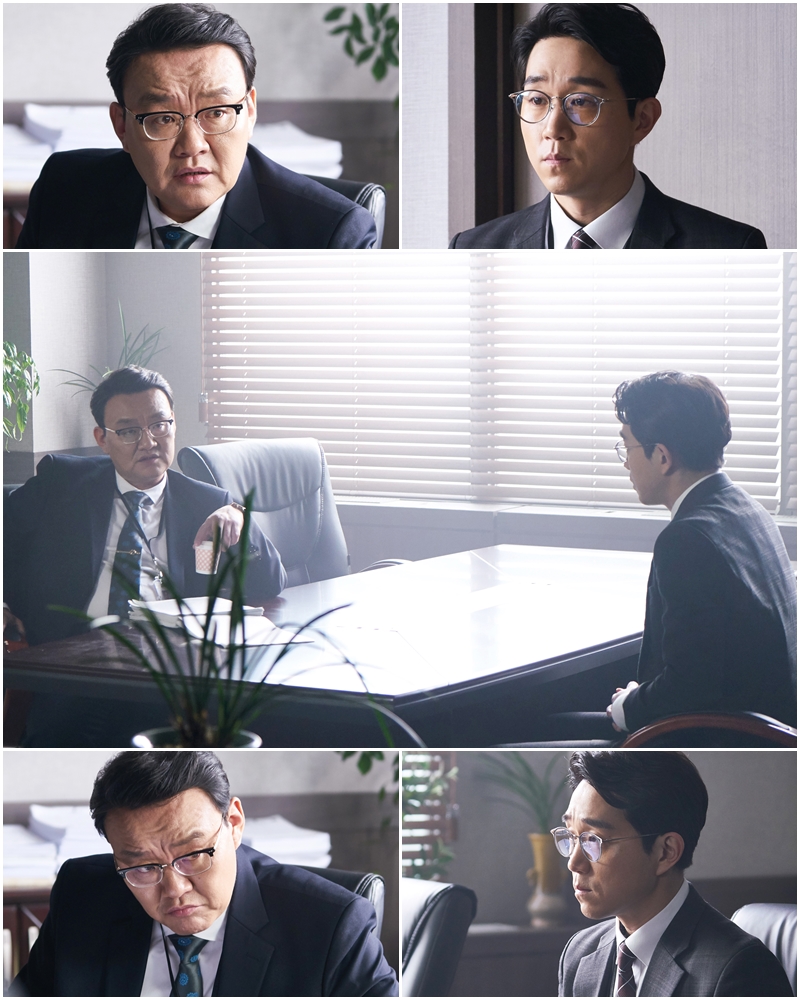 이와 관련 오는 10일, 11일 방송분에서 차순배와 최성원이 마주보고 앉은 채로 은밀한 중상모략에 집중하고 있는 현장이 담긴다. 극 중 부장검사인 차우진(차순배)이 자신을 찾아온 검사 김명진(최성원)과 심도 깊은 대화를 나누는 장면. 두꺼운 서류뭉치를 앞에 둔 채 차우진은 의자에 기대앉아 의미심장한 표정을 짓고 있는 반면, 김명진은 잔뜩 군기가 들어간 꼿꼿한 자세와 근심이 가득한 얼굴로 차우진의 말에 귀 기울이고 있다. 과연 작당 모의에 매진하고 있는 두 사람이 지수현과 선데이 통신에 어떤 위기를 불러오게 될 지 궁금증이 높아지고 있다.