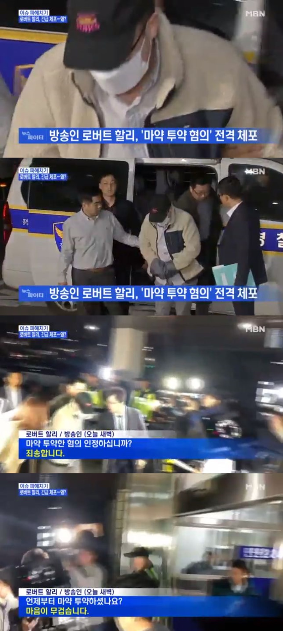 앞서 로버트 할리는 8일 오후 4시 10분께 서울시 강서구의 한 주차장에서 마약류 관리에 관한 법률 위반 혐의로 경기남부지방경찰청 사이버수사대에 체포됐다. 서울 자택에서 인터넷으로 구매한 필로폰을 투약한 혐의를 받는다. 경찰은 로버트 할리로부터 혐의를 일부 인정한다는 취지의 진술을 받았다. 로버트 할리는 "인터넷을 통해 마약 광고를 보고 지난달 중순 필로폰을 구입해 이달 초 투약했다"고 경찰에 진술한 것으로 알려졌다.