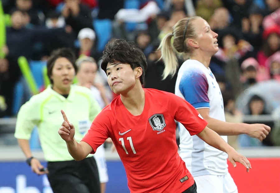 윤덕여 감독이 이끄는 한국은 9일 송암스포츠타운에서 열린 아이슬란드와 평가전에서 1-1로 비겼다. 선제골을 허용했으나 지소연이 동점골을 터뜨렸다. 한국은 아이슬란드와 평가전을 1무 1패로 마쳤다. 앞서 6일 용인에서 열렸던 첫 번째 평가전은 2-3으로 패했다.