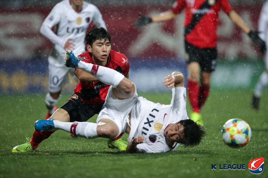 거친 비바람에도 열기는 뜨거웠다. 경남과 가시마는 코너킥에서 치열한 자리 싸움을 했다. 가시마 공격을 막은 경남은 빠른 역습으로 배후 공간을 침투했다. 권순태가 이광진과 경합 과정에서 발을 밟혀 그라운드를 떠났다.