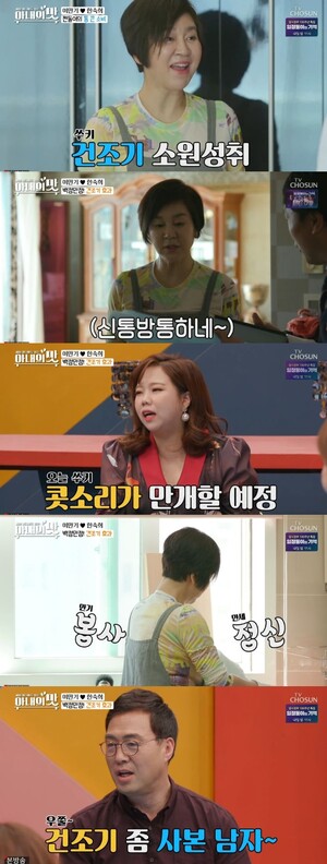 앞서 이만기는 한숙희가 사달라는 건조기가 너무 비싸 무시해 왔지만, 결국 아내를 위해 몰래 구매를 했던 것. 한숙희는 건조기를 보자마자 "자기는 이제 일 그만해"라고 말했고 이만기가 먼저 외출하자 "짠돌이가 웬일이야"라며 콧노래를 부르며 행복해 해 웃음을 자아냈다.