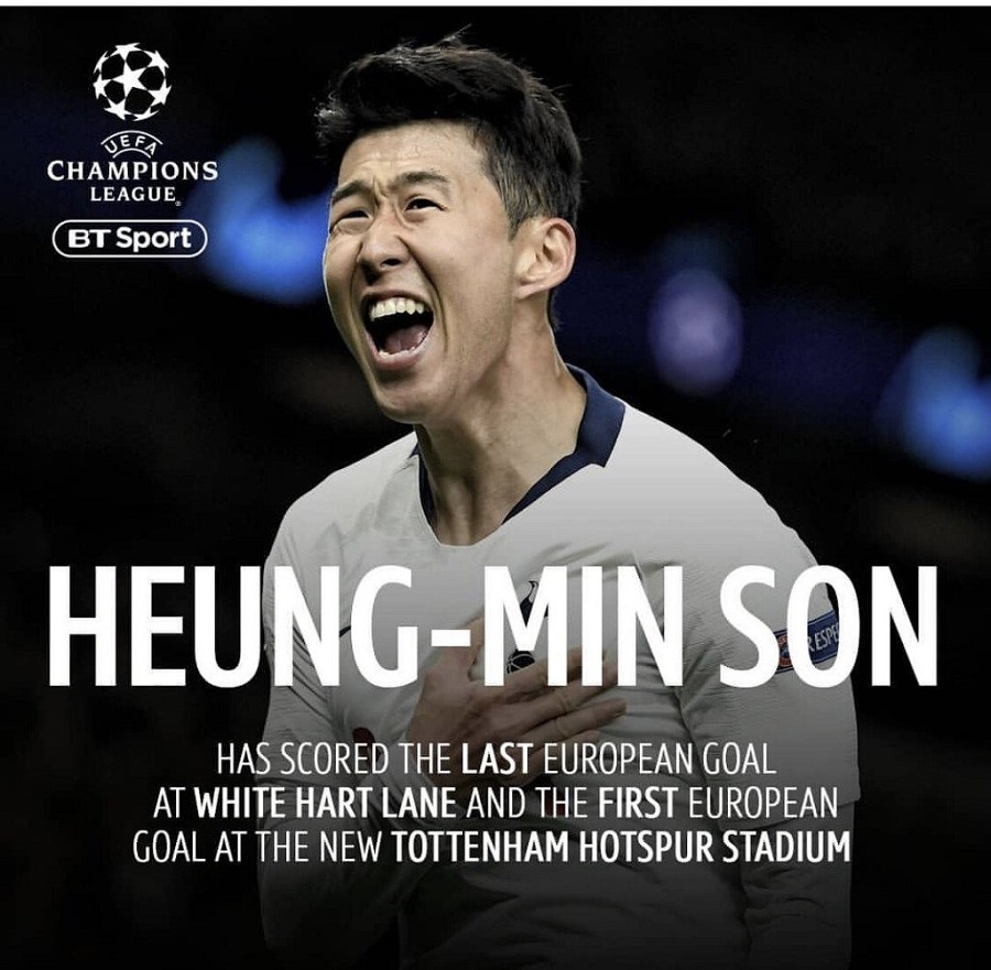 BT스포츠는 "손흥민이 화이트하트레인의 마지막 유로피언 득점자이며, 뉴 토트넘홋스퍼 스타디움의 유로피언 첫득점자이다"며 역사가 된 손흥민을 소개했다.