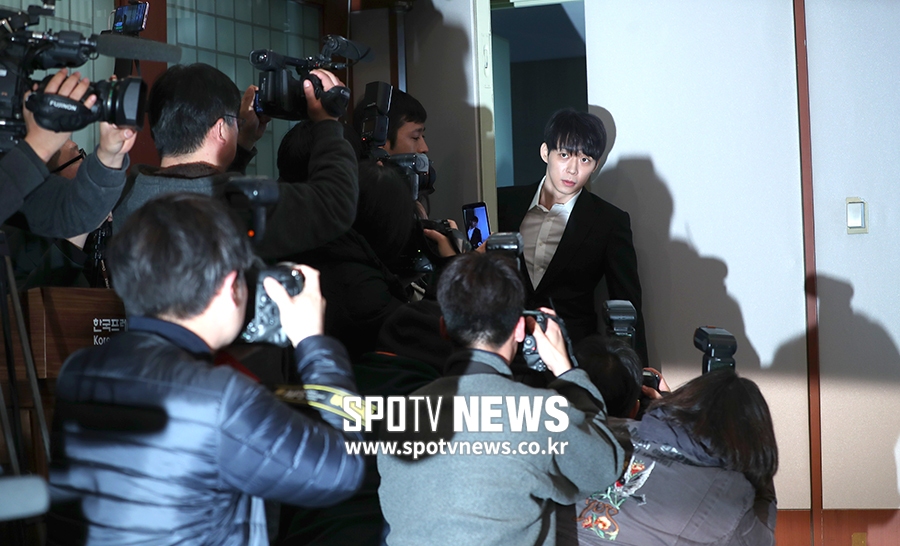 [스포티비뉴스=서울, 곽혜미 기자] 황하나 마약 수사와 관련해 연예인 A씨로 지목되고 있는 가수 JYJ 박유천이 10일 오후 서울 중구 한국프레스센터에서 긴급 기자회견을 열었다. 박유천이 입장하고 있다.