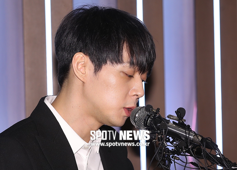 [스포티비뉴스=서울, 곽혜미 기자] 황하나 마약 수사와 관련해 연예인 A씨로 지목되고 있는 가수 JYJ 박유천이 10일 오후 서울 중구 한국프레스센터에서 긴급 기자회견을 열었다. 박유천이 심경을 밝히고 있다.