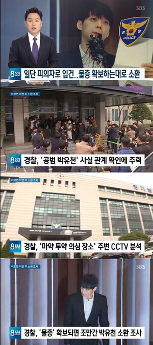 10일 방송된 SBS '8뉴스'는 경찰이 박유천의 결백 주장과 별개로 황하나가 공범으로 박유천을 지목했기 때문에 사실 관계 확인에 주력하고 있다고 보도했다.