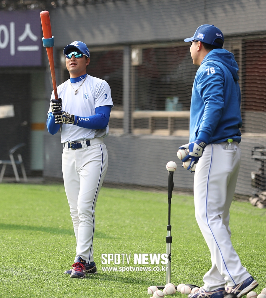 [스포티비뉴스=잠실, 곽혜미 기자] 2019 신한은행 MY CAR KBO리그 LG 트윈스와 삼성 라이온즈의 경기가 11일 오후 서울 잠실야구장에서 열렸다. 삼성 김상수가 타격 훈련을 하고 있다.
