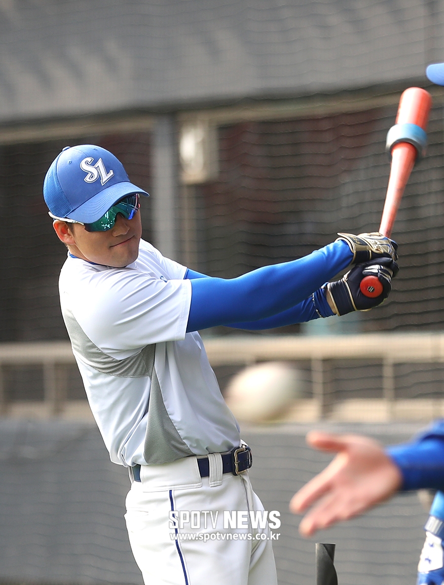 [스포티비뉴스=잠실, 곽혜미 기자] 2019 신한은행 MY CAR KBO리그 LG 트윈스와 삼성 라이온즈의 경기가 11일 오후 서울 잠실야구장에서 열린다. 삼성 김상수가 타격 훈련을 하고 있다.