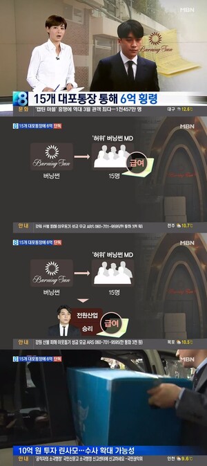 11일 방송된 MBN '뉴스8'은 가수 승리의 횡령 혐의에 대해 보도했다.