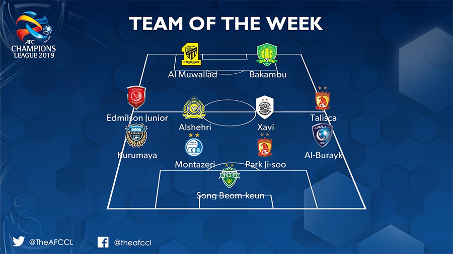 아시아축구연맹(AFC)은 11일 공식 홈페이지를 통해 챔피언스리그 조별리그 3차전 이주의 팀을 발표했다. 챔피언스리그 조별리그 3차전에서 최고의 경기력을 보인 11명이 나란히 뽑혔다.