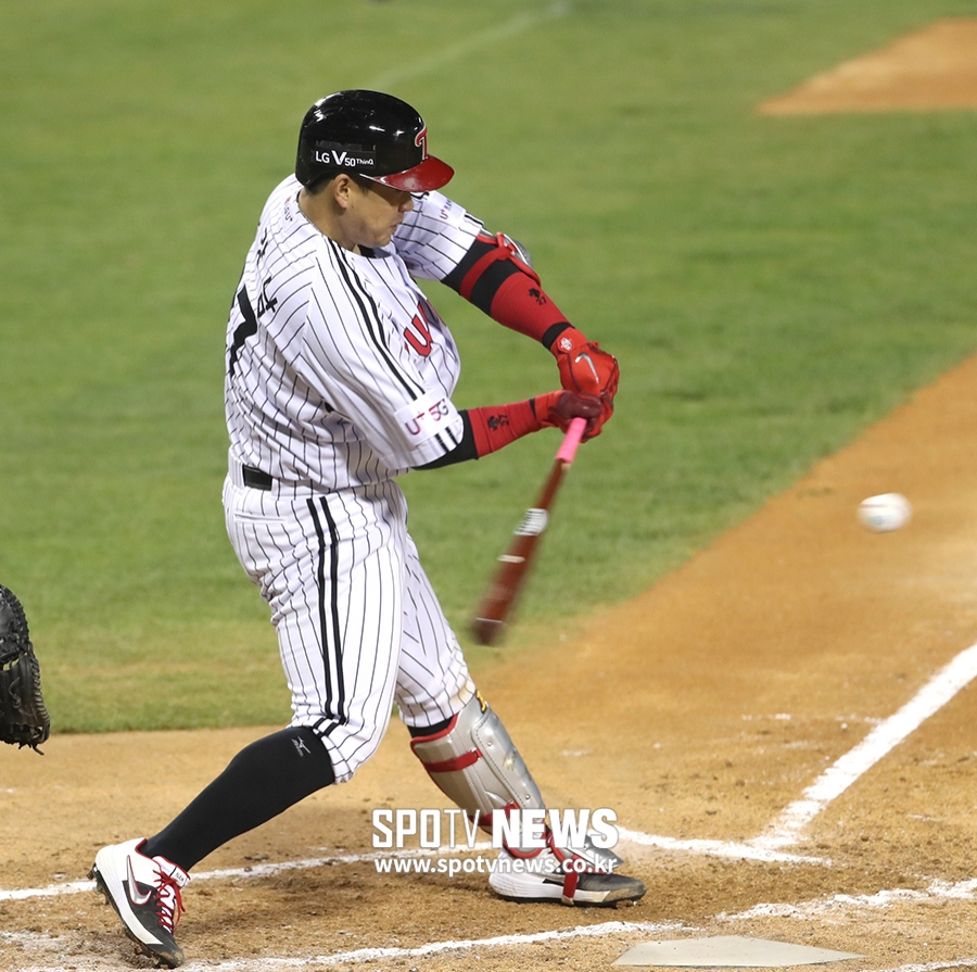 [스포티비뉴스=잠실, 곽혜미 기자] 2019 신한은행 MY CAR KBO리그 LG 트윈스와 삼성 라이온즈의 경기가 11일 오후 서울 잠실야구장에서 열린다. 7회말 1사 LG 유강남이 2루타를 날리고 있다.