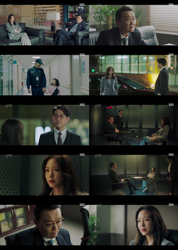 극 중 지수현은 대표 조형준(김희원)으로부터 안피디(유정호)와 만난 장소에 잠복해있던 이들이 검찰 쪽이라는 사실을 듣게 됐고, 작전에 실패한 차우진은 조형준의 팔다리부터 잘라야 한다며 이를 갈았던 상황. 차우진의 계획은 이후 예상 밖 상황에서 진행됐다. 딸을 그리워하는 한석주를 위해 세은이가 입원해 있는 병원의 야간 경비를 하도록 해 준 지수현 앞에 김명진(최성원)이 나타났던 것. 김명진은 지수현에게 안피디와 만났던 사진과 괴로운 듯 흐느끼고 있는 안피디의 사진을 내밀며 임의동행을 요구했다.