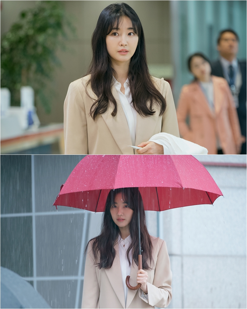 그런 가운데 김사랑이 봄의 절정을 알리듯 베이지 컬러 수트를 입고 미녀 검사의 프로페셔널한 자태를 뽐내고 있는 현장이 포착됐다. ‘법조계 여신’ 고세연의 모습에 이목이 쏠린다. 특히 쏟아지는 빗줄기 속 누군가를 응시하는 김사랑의 모습이 눈길을 끈다. 향후 펼쳐질 김사랑과 박보영의 1인2역에도 관심이 쏠린다.