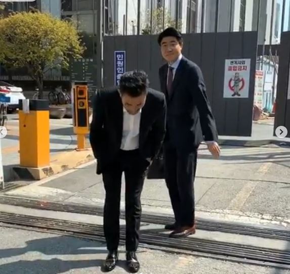 또 다른 영상에서는 최민수가 법원으로 들어서기 직전, 강주은에게 허리를 숙여 인사하고 있다.