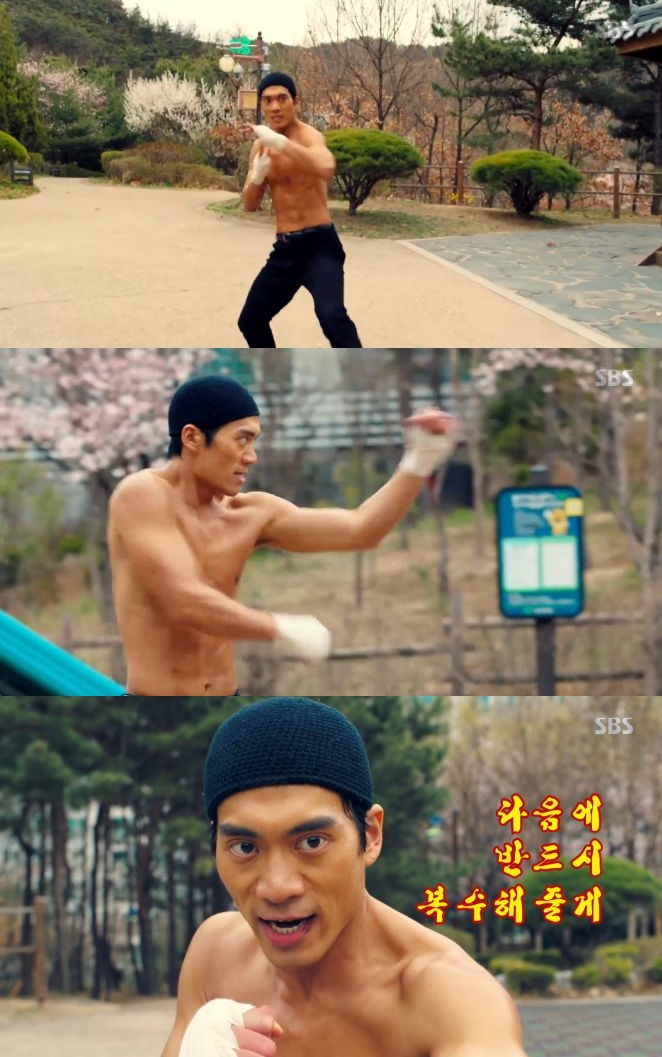 12일 방송된 SBS 금토드라마 '열혈사제'에서는 웃통을 벗고 무술을 단련하는 쏭삭(안창환)의 모습이 전파를 탔다.