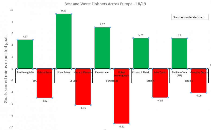 영국 매체 ‘스포츠바이블’이 통계 업체 ‘언더스탯’ 데이터를 기반으로 2018-19 시즌 현재 유럽 최고의 피니셔를 공개했다. 손흥민은 4.97로 유럽 전체 5위를 차지했다. 메시가 9.37로 유럽 최고의 피니셔 영광을 얻었다.