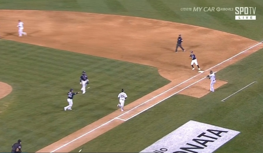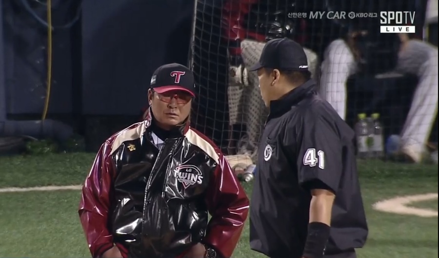 LG는 이미 한 차례 3피트 방해 아웃을 겪고도 또 한번 아쉬운 아웃카운트 하나를 헌납해야 했다. 이날도 류중일 감독이 나와 심판에게 김민성이 파울라인 안쪽으로 달렸지만 송구하는 데 방해를 한 것은 아니지 않느냐는 뜻으로 항의를 했지만 받아들여지지 않았다.
