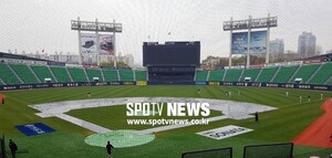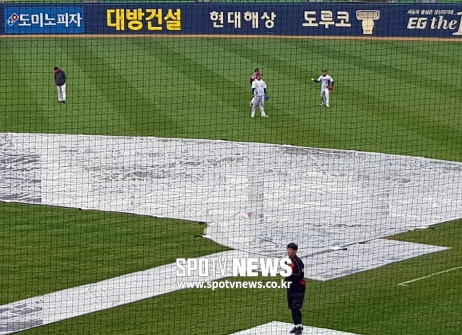 낮 12시 18분부터는 구장 관리 요원들이 방수포를 걷기 시작했다.