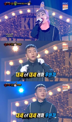 이날 세 번째 무대에는 '파워워킹'과 '스타킹'이 올라 전인권의 '걱정말아요 그대요' 무대를 담백하면서도 매혹적인 보이스로 꾸몄다. 67대 32로 탈락한 '스타킹'의 정체는 바로 래퍼 우원재였다.