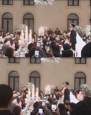 공개한 영상 속에는 하객들의 박수 속에서 이용진과 그의 신부가 감사 인사를 하며 버진 로드를 행진하는 모습이 담겨 눈길을 끈다.