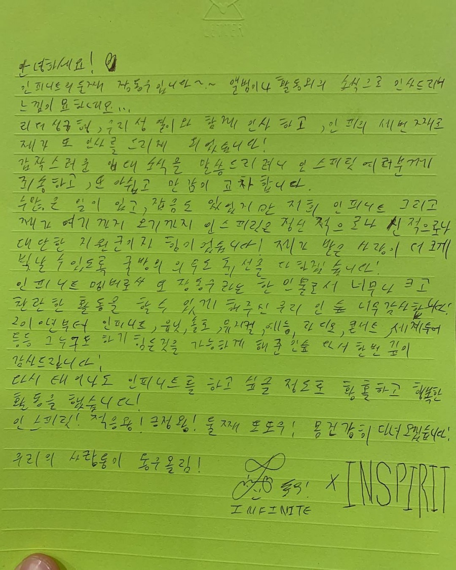 - 인피니트 동우 오늘(15일) 입대, 자필 편지→성종의 배웅→입소 소감 "씩씩하게"[종합]