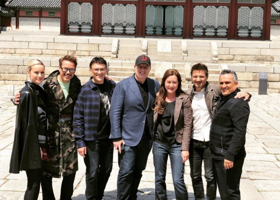 '호크아이' 제레미 레너는 15일 오후 자신의 인스타그램에 '어벤져스:엔드게임' 개봉을 앞두고 내한한 동료 배우, 제작진과 함께 경복궁을 방문한 인증샷을 공개했다. 제레미 레너가 게재한 사진에는 '캡틴 마블' 브리 라슨, '아이언맨' 로버트 다우니 주니어를 비롯해 조 루소 감독, 케빈 파이기 마블 스튜디오 대표, 트린 트랜 프로듀서, 안소니 루소 감독 등이 경복궁을 배경으로 어깨동무를 하고 환한 웃음을 짓고 있다. "이 사람과는 폼을 잡고"라는 설명과 함께 로버트 다우니 주니어와 함께 한 투샷도 게재했다.