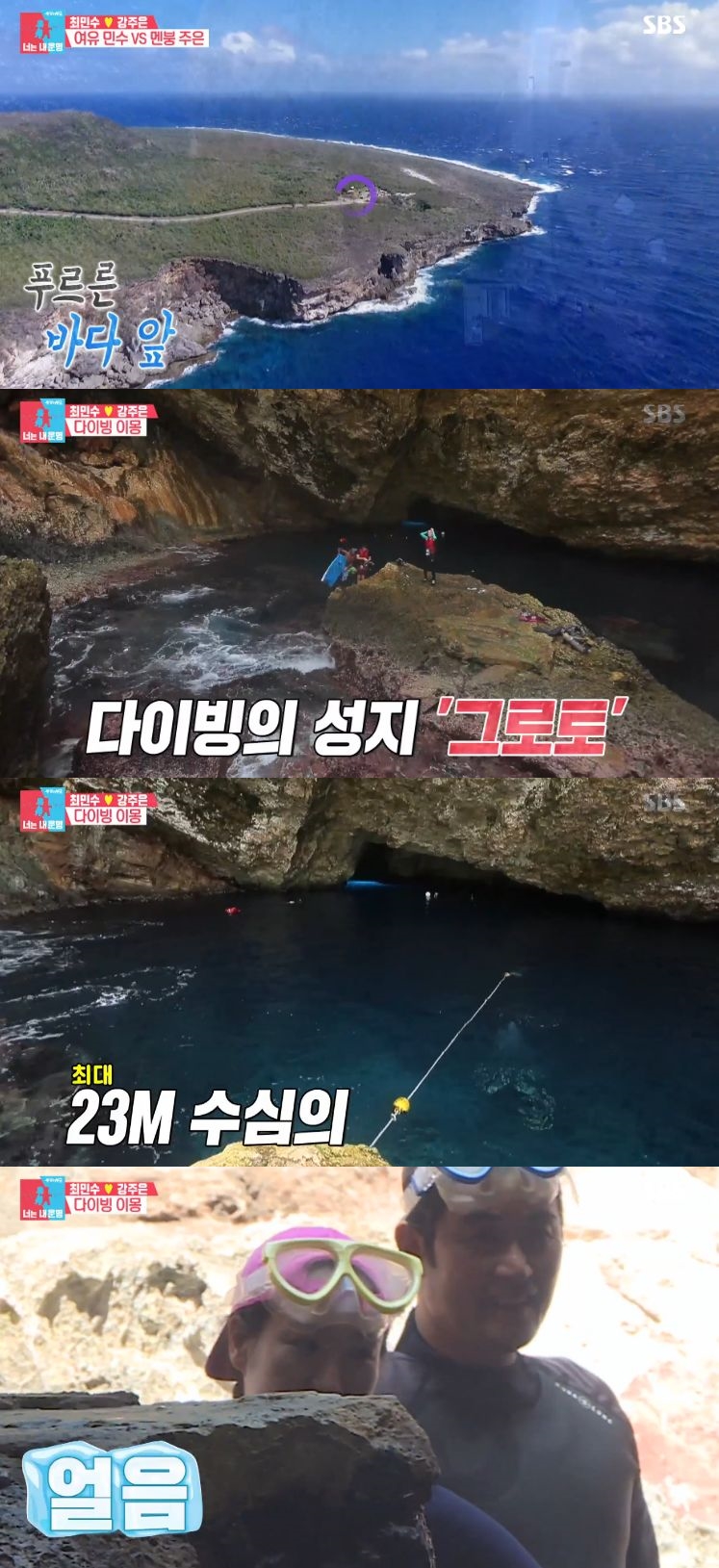 강주은 최민수 부부는 사이판 그로토에서 스쿠버다이빙 도전에 나섰다. 두 사람은 25년 전에도 스쿠버다이빙 자격증을 취득한 적이 있지만 동굴에서의 다이빙은 처음이었다.