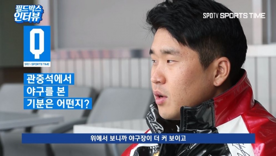 "프로야구는, 정확히 나이는 기억 안 나지만 와 본 기억은 난다. 예전에는 불펜이 밖에 나와 있었다. 그때 어머니랑 본 기억이 있다. "
