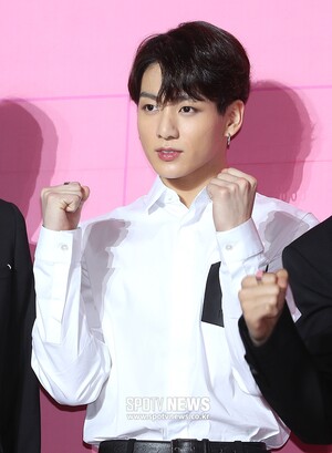 [스포티비뉴스=서울, 곽혜미 기자] 방탄소년단 'MAP OF THE SOUL : PERSONA(맵 오브 더 소울 : 페르소나)' 발매 기념 글로벌 기자 간담회가 17일 오전 서울 중구 동대문디자인플라자에서 열렸다. 방탄소년단 정국이 포즈를 취하고 있다.