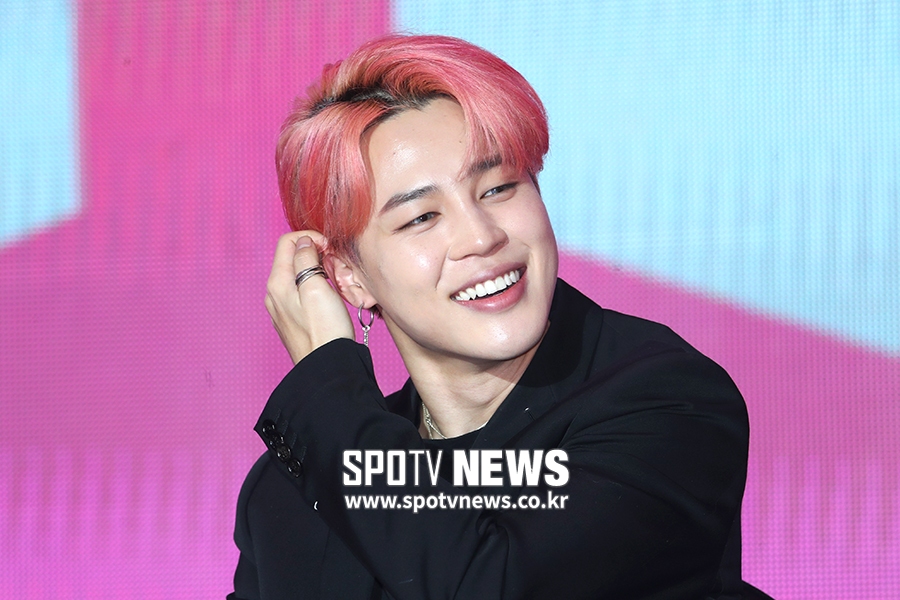 [스포티비뉴스=서울, 곽혜미 기자] 방탄소년단 'MAP OF THE SOUL : PERSONA(맵 오브 더 소울 : 페르소나)' 발매 기념 글로벌 기자 간담회가 17일 오전 서울 중구 동대문디자인플라자에서 열렸다. 방탄소년단 지민이 미소를 짓고 있다.