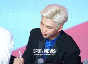 [스포티비뉴스=서울, 곽혜미 기자] 방탄소년단 'MAP OF THE SOUL : PERSONA(맵 오브 더 소울 : 페르소나)' 발매 기념 글로벌 기자 간담회가 17일 오전 서울 중구 동대문디자인플라자에서 열렸다. 방탄소년단 RM이 취재진의 질문을 적고 있다.