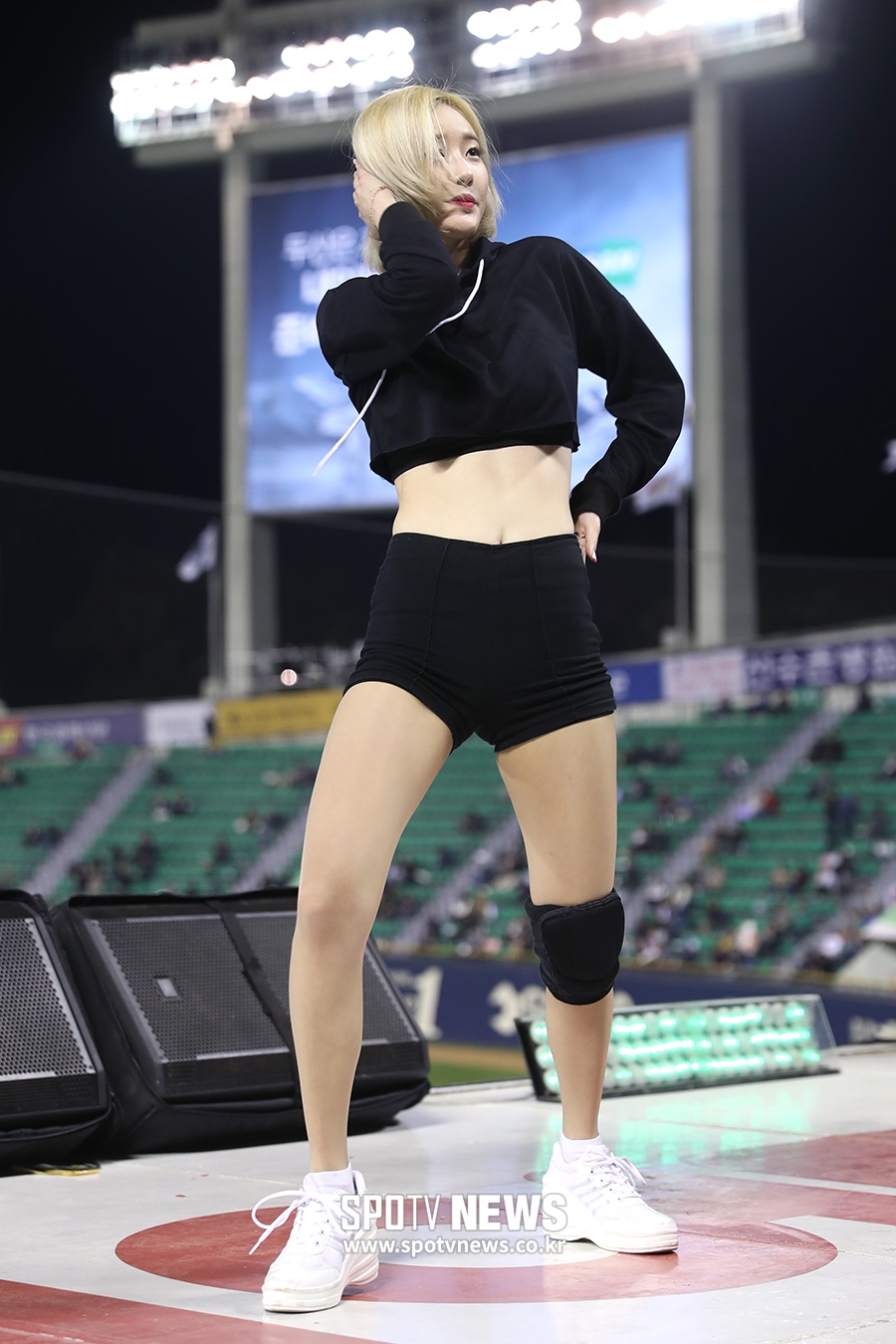[스포티비뉴스=잠실, 곽혜미 기자] 2019 신한은행 MY CAR KBO리그 두산 베어스와 SK 와이번스의 경기가 17일 오후 서울 잠실야구장에서 열렸다. 치어리더 서현숙이 응원 무대를 펼치고 있다.