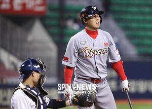 [스포티비뉴스=잠실, 곽혜미 기자] 2019 신한은행 MY CAR KBO리그 두산 베어스와 SK 와이번스의 경기가 17일 오후 서울 잠실야구장에서 열렸다. 5회초 2사 1,3루 상황에서 SK 최정이 파울에 아쉬워하고 있다.